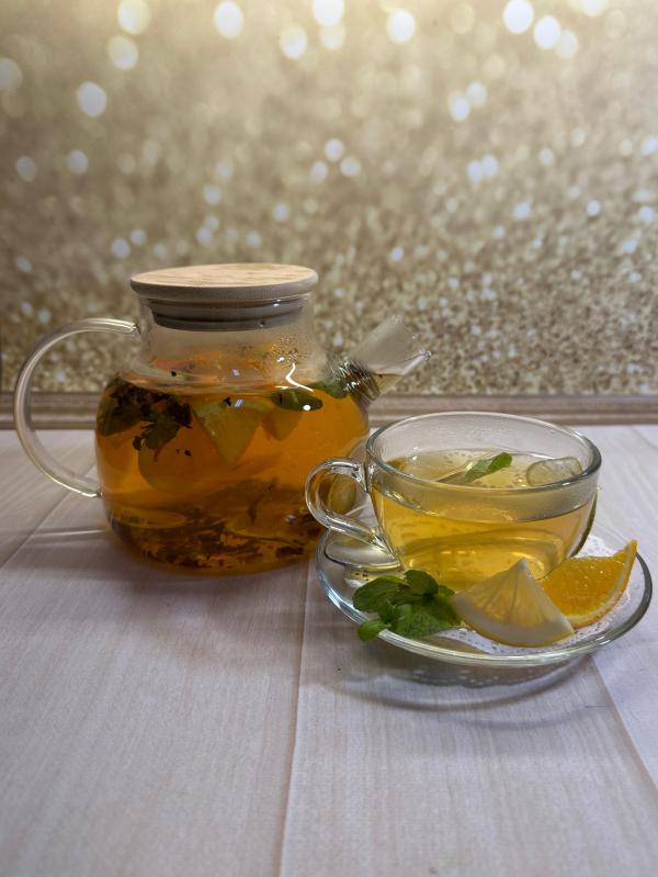 Чай черный, облепиха, мед, имбирь или чай ягодный на выбор